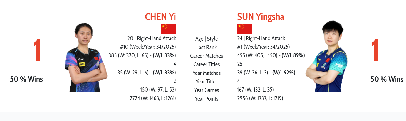 陈熠下一轮的对手是孙颖莎,而她在前不久的美国大满贯以3比1击败了孙颖莎。双方一共交手2次,两人还曾在2015年太仓的青少年公开赛交手,孙颖莎以3比0获胜。时隔10年,陈熠在美国大满贯击败孙颖莎。